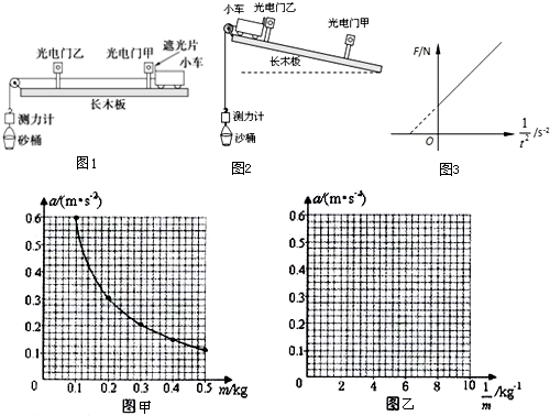 (1)在探究“合外力一定时,加速度与质量的关系”时,如果不计空气阻力及一切摩擦,要使测力计的示数等于小车所受合外力,操作中必须______.某同学把实验得到的几组数据画成图甲的a-m图象,为了更直观描述物体的加速度跟其质量的关系,请你根据他的图象在图乙中画出a-