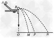 1、实验题 如图所示装置通过半径相同的A、B两球(质量分别为mA、mB)的碰撞来验证动量守恒定律。实验时先使A球从斜槽上某一固定位置G由静止开始滚下,落到位于水平地面的记录纸上,留下痕迹。重复上述操作10次,得到10个落点痕迹。再把B球放在水平槽上靠近槽末端的地方,让A球仍从位置G由静止开始滚下,和B球碰撞后,A、B球分别在记录纸上留下各自的落点痕迹。重复这种操作10次,得到如图所示的三个落点。用刻度尺分别测量三个落点的平均位置离O点的距离,即线段OM、OP、ON的长度。