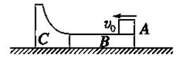 2、计算题 (10分)如图所示,在光滑水平面上有一块长为L的木板B,其上表面粗糙.在其左端有一个光滑的圆弧槽C与长木板接触但不连接,圆弧槽的下端与木板的上表面相平,B、C静止在水平面上.现有可视为质点的滑块A以初速度v0从右端滑上B并以