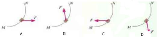 1、选择题 某旅行团到洪湖观光旅游,乘汽艇游览洪湖,汽艇在湖面转弯,沿曲线由M向N行驶,速度逐渐增大,如图A、B、C、D分别画出了汽艇转弯时所受合力的情况,你认为正确的是(?)