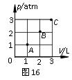 1、填空题 如图16为一定质量的某种理想气体的p--V图,其中A、B、C三点所对应的状态的温度分别用TA、TB、TC来表示,那么TA:TB:TC= .
