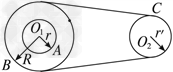 4、填空题 如图所示,转轴O1上固定有两个半径分别为R和r的轮,用皮带传动O2轮,O2的轮半径是r′,若O1每秒钟转了5圈,R=1m,r=r′=0.5m,则: