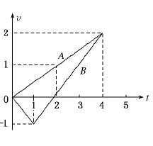 3、选择题 如图所示,A与B两质点的运动情况在v-t图象中,由A与B表示,则下列叙述正确的是(? )