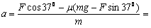 3、计算题 如图所示,质量为4.0kg的物体在与水平方向成37°角、大小为20.0N的拉力F作用下,沿水平面由静止开始运动,物体与地面间动摩擦因数为0.20(取g=10m/s2,已知cos37°=0.8,sin37°=0.6);求: