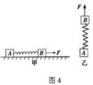 ;当用同样大小的力F竖直加速提升两物块时(如图4乙所示),弹簧的伸长量为