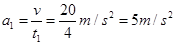 1、计算题  质点从静止开始做匀加速直线运动,经4s后速度达到20m/s,然后匀速运动了10s,接着经5s匀减速运动后静止。求: