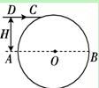(2)(10分)高速公路上的标志牌都用“回归反射膜”制成,夜间行车时,它能把车灯射出的光逆向返回。这种“回归反射膜”是用球体反射元件制成的。如图所示,透明介质球的球心位于O点,半径为R,光线DC平行于直径AOB射到介质球的C点,DC与AB的距离H=R.DC光线进入介质球折射后,经一次反射,再折射后射出的光线与入射光线平行,作出光路图,并算出介质球的折射率.