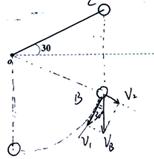 4、计算题 如图所示:摆球的质量为m,从偏离水平方向30°的位置由静止释放,设绳子为理想轻绳,已知绳长为L,重力加速度为g,求
