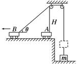 2、选择题 一辆车通过一根跨过定滑轮的轻绳子提升一个质量为m的重物,开始车在滑轮的正下方,绳子的端点离滑轮的距离是H.车由静止开始向左做匀加速运动,经过时间t绳子与水平方向的夹角为θ,如图所示,则( )