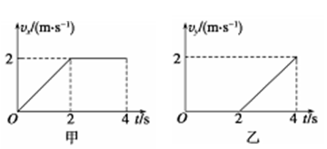 5、选择题 在一光滑水平面内建立平面直角坐标系,一物体从t=0时刻起,由坐标原点O(0,0)开始运动,其沿x轴和y轴方向运动的速度—时间图象如图甲、乙所示,下列说法中正确的是 ( )