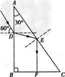 由几何关系不难得出,光线射到界面AC时的入射角为60°,由