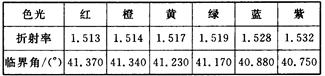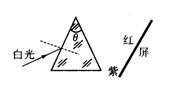,一束白光以较大的入射角从棱镜的左侧面射入,在光屏上形成从红到紫排列的彩色光带,各色光在棱镜中的折射率和临界角见表.当入射角逐渐减小到0