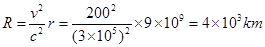 km处有一颗恒星以200km/s的速度绕其旋转。根据以上信息,试估算这一“黑洞”的半径R=_____m。(已知c=3×105km/s保留一位有效数字)