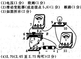 (3)从c点往右,电阻越来越小,电压表示数越来越大,所以c点的电压表示数最大,故不可能出现1.30V,电流表的示数最小,从0.25开始增加,故选B