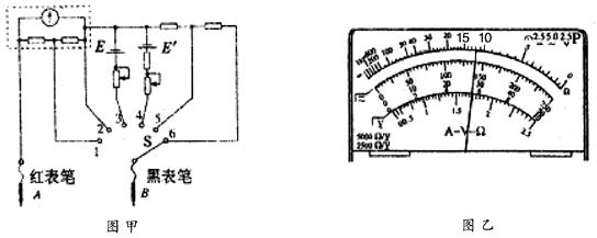 本题解析:(1)测量电阻时欧姆表内部应接有电源,由图甲可知测电阻只有接3或4;当转换开关S旋到1和2时,测量电流,电流表表头所并联的电阻越大,所测量电流值越小,故当转换开关S旋到1的量程比旋到2的量程大.