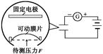 试题分析: 当待测压力增大时,电容器板间距离减小,根据电容的决定式C=