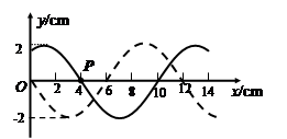 4、选择题 如图所示,实线是沿x轴传播的一列简谐横波在t=0时刻的波形图,x=4cm处的质点P恰在平衡位置,虚线是这列波在t=0.2 s时刻的波形图。已知该波的波速是0.8 m/s,则下列说法正确的是