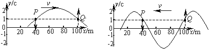 如果波向正x方向传播,P、Q间将至少有一个波峰,波形如图的左边图所示,即P、Q的距离可能等于λ/3,也可能等于4λ/3、7λ/3……波长λ=