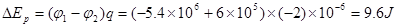 故答案为:-5.4×106 V,-6×105 V?减少? 9.6J