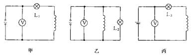 选择题 如图所示,甲、乙两图使用交流电源,丙图使用直流电源,各图中线圈不计直流电阻,自感系数相同,各电压表示数相同,则下列说法正确的是A.灯L1比灯L2亮B.灯L3比灯L1亮C.灯L2,L3一样亮D.灯L1,L3一样亮
