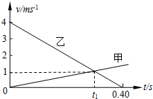 选择题 两物体甲和乙在同一直线上运动,它们在 0~0.4s时间内的v-t图象如图所示.若仅在两物体之间存在相互作用,则物体甲与乙的质量之比和图中时间t1分别为A.和0.30sB.3和0.30sC.和0.28sD.3和0.28s