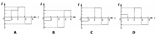 本题解析:在第一阶段,只有bc切割向外的磁感线,由右手定则知感应电流为负方向,大小为;在第二阶段,bc切割向里的磁感线,感应电流为逆时针方向,同时de切割向外的磁感线,感应电流为顺时针方向,则等效感应电流为零;在第三阶段,de切割向里的磁感线同时af切割向外的磁感线,两个电动势同为逆时针方向,等效电流为正方向,大小为;在第四阶段,只有af切割向里的磁感线,电流为负方向,等效感应电流为.故C正确,A、B、D错误.故选C.