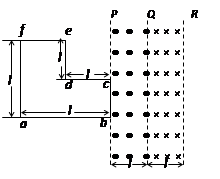 2、选择题  如图所示,在PQ、QR区域存在着磁感应强度大小相等、方向相反的匀强磁场,磁场方向均垂直于纸面,bc边与磁场的边界P重合。导线框与磁场区域的尺寸如图所示。从t=0时刻开始线框向右匀速横穿两个磁场区域。以a→b→c→d→e→f为线框中电流的正方向。以下四个i-t关系示意图中正确的是(    )