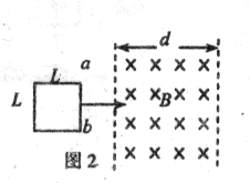1、选择题  边长为的正方形金属框在水平恒力作用下,穿过如图2所示的有界匀强磁场,磁场宽度为,已知边进入磁场时,线框刚好做匀速运动,则线框进入磁场过程和从磁场另一侧穿出过程相比较,说法正确的是:(?)