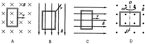 4、选择题  如图所示,矩形线框在磁场内做的各种运动中,能够产生感应电流的是(?)