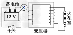 1、选择题  汽车消耗的主要燃料是柴油和汽油。汽油机工作时,汽缸中汽油和空气的混合气靠火花塞点燃的。但是汽车蓄电池的电压只有12 V,直接使用不能使火花塞中产生火花,因此,要使用如图所示的点火装置,此装置的核心是一个变压器,该变压器的原线圈通过开关连到蓄电池上,副线圈接到火花塞的两端,开关由机械控制,通过开关的断开或闭合,能在副线圈中产生10000 V以上的电压,这样就能在火花塞中产生火花了。下列关于该装置的说法正确的是( ? )