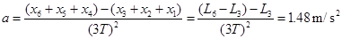 根据匀变速直线运动的推论公式,采用逐差法求加速度,即小车运动的加速度为:
