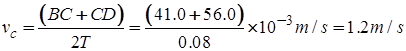 ②根据匀变速直线运动的推论时间中点的速度等于该过程中的平均速度得:画到记号C时铁棒下落的速度大小为,