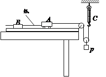 5、实验题 如图所示为“探究加速度与物体受力的关系”的实验装置图。图中A为小车,质量为m1,连接在小车后面的纸带穿过电火花打点计时器B,它们均置于水平放置的一端带有定滑轮的足够长的木板上,p的质量为m2 , C为弹簧测力计,实验时改变p的质量,读出测力计不同读数F,不计绳与滑轮的摩擦。