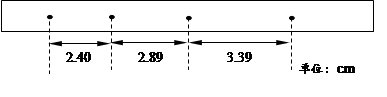 (3)下图为某次实验得到的纸带,纸带上标出了所选的四个计数点之间的距离,相邻计数点间还有四个点没有画出。由此可求得小车的加速度的大小是?m/s2。(交流电的频率为50Hz,结果保留二位有效数字)