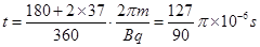 联立以上各式,可得:sinθ=0.6,所以θ=37°;则在磁场中飞行的时间为: