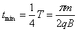 同理:粒子由右上方射入磁场时且速度方向与MN间夹角为45°时,在磁场中运行时间最短