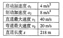 1、简答题 (本题12分)要求摩托车由静止开始在尽量短的时间内走完一段直道,然后驶入一段半圆形的弯道但在弯道上行驶时车速不能太快,以免因离心作用而偏出车道。求摩托车在直道上行驶所用的最短时间。有来源:91考试网 91ExaM.org关数据见表格。