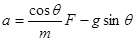 本题解析:当外力为0时,加速度为-6m/s2,即-mgsinθ=ma,可以求出斜面的倾角;当外力等于30N时,加速度为6m/s2,即Fcosθ–mgsinθ=ma,即立刻求出物体的质量m由