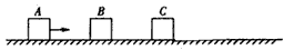 1、计算题 如图所示,三个可视为质点的物块A,B,C,在水平面上排成一条直线,且彼此间隔一定距离。已知mA=mB=10 kg,mC=20 kg,C的左侧水平面光滑,C的右侧水平面粗糙,A,B与粗糙水平面间的动摩擦因数μA=μB=0.4,C与粗糙水平面间动摩擦因数μC=0.2,A具有20 J的初动能向右运动,与静止的B发生碰撞后粘在一起,又与静止的C发生碰撞,最后A,B,C粘成一个整体,求:(取g=10 m/s2)