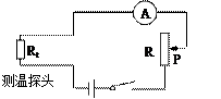 1、实验题 通常情况下,电阻的阻值会随温度的变化而改变,利用电阻的这种特性可以制成电阻温度计,从而用来测量较高的温度。如图所示,电流表量程为0~25mA,电源电动势为3V,内阻不计。R为滑动变阻器,电阻Rt作为温度计的测温传感器。当t≥0℃时,Rt的阻值随温度t的变化关系为Rt=20+0.5t(单位为Ω)。先把Rt放入0℃环境中,闭合电键S,调节滑动变阻器R,使电流表指针恰好满偏,然后把测温探头Rt放到某待测温度环境中,发现电流表的示数为10mA,该环境的温度为__________℃;当把测温探头Rt放到480℃温度环境中,电路消耗的电功率为__________W。