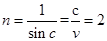 又因为介质Ⅱ中的光速为v2=c/2,所以光在介质二中的临界角满足: