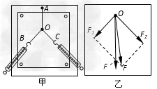 2、实验题 某同学做“验证力的平行四边形定则”实验的情况如图甲所示,其中A为固定橡皮筋的图钉,O为橡皮筋与细绳的结点,OB和OC为细绳。图乙是在白纸上根据实验结果画出的图。