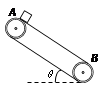 5、选择题 如图,A、B两个皮带轮被紧绷的传送皮带包裹,传送皮带与水平面的夹角为θ,在电动机的带动下,可利用传送皮带传送货物。已知皮带轮与皮带之间无相对滑动,皮带轮不转动时,某物体从皮带顶端由静止开始下滑到皮带底端所用的时间是t,则 (?)