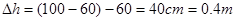 高度 h(m) | 0.2 | 0.3 | 0.4 | 0.5 | 0.6 | 0.8 |