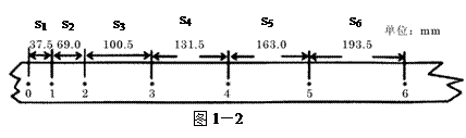 4、简答题 某同学用图1-2所示装置测量重力加速度g,所用交流电频率为50 Hz.在所选纸带上取某点为0号计数点,然后每3个点取一个计数点,所以测量数据及其标记符号如图所示.