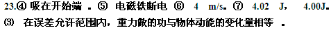 故答案为:④吸在开始端.⑤电磁铁断电 ⑥4 m/s.⑦4.02 J,4.00J.(3)在误差允许范围内,重力做的功与物体动能的变化量相等.