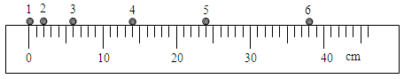 4、实验题 在某一次实验中,有一位同学让一小球在水平桌面上从静止开始做匀加速直线运动,用高频摄影机在同一底片上多次曝光,记录下小球每次曝光的位置,并将小球位置编号。如图所示,1位置恰好为小球开始运动的瞬间,作为零时刻。摄影机连续两次曝光时间间隔均为0.5s。