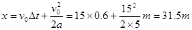 停止,所以司机发现情况后,卡车经过3.6 s停下;汽车在0.6s内及减速运动内的位移之和