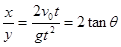 试题分析:如图平抛的末速度与竖直方向的夹角等于斜面倾角θ,则有:A.水平速度与竖直速度之比
