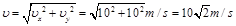 5、计算题 从地面上方某点,将一小球以10m/s 的初速度沿水平方向抛出,小球经过1s落地,不计空气阻力,取g =10m/s?。试求小球在这过程中的位移和落地速度。